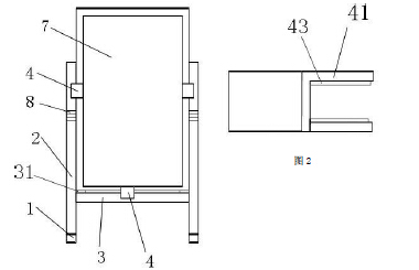 現有的展板架只是簡單地將展板架在上面,對展板進行限位,而不能達到完全的固定,在使用時由于外力作用展板晃動或與展架之間摩擦發出噪音,特別是在風大的環境下,展板在晃動其較大的慣性可能將展板架帶翻,展板脫出,帶來危險,安全性差。現有的展板架在安裝時由于兩者之間的摩擦會產生刺耳的噪音,且兩者之間安裝時會產生一些碰撞,發出噪音同時易損不展板和展架,大大縮短了使用壽命。