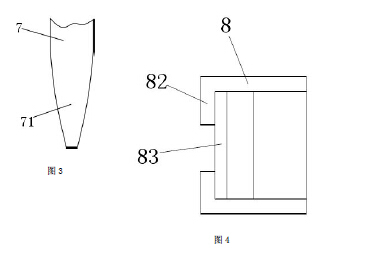 一種防撞展板組件,包括展架和架設于展架上的展板7,包括兩對稱設置的底桿1、垂直設置于底桿1上的架桿2和連接于架桿2間的連桿3,所述架桿2內側和連桿3上設置有限位框4,所述架桿2上設置有對裝入展架的展板進行定位的定位部件,所述展板7底部設置有由上至下寬度逐漸變窄的導入段71,所述限位框4內設置有防撞墊,所述連桿3上表面設置有彈性緩沖部件31。所述限位框4包括用于連接架桿2的側板和設置于側板兩側的框板41。所述定位部件包括設置于架桿2上的定位框8和設置于定位框8內的可滑動的定位墊81。所述定位框8外側設置有壓邊82,所述定位墊81與壓邊82之間設置有與定位墊81固連的滑板83。所述定位墊81為橡膠塊,所述橡膠塊內側面上設置有傾斜面84。所述防撞墊為設置于兩框板41相向面上的橡膠墊片43。所述彈性緩沖部件31為彈簧或橡膠片。